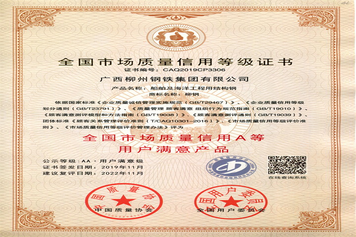 全國用戶(hù)滿(mǎn)意產(chǎn)品2019-船用鋼