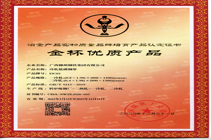 全國市場(chǎng)質(zhì)量信用AA級用戶(hù)滿(mǎn)意產(chǎn)品2021-冷軋低碳鋼帶
